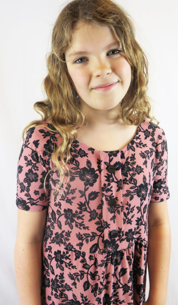 Sylvan is an adaptive and sensory-friendly dress pattern for your girls age 3 to 12 years. The dress is designed to be made using soft touch jersey fabric, (although all thin to medium weight jersey fabrics can be used). Soft touch jersey gives a gentle touch against sensitive skin.