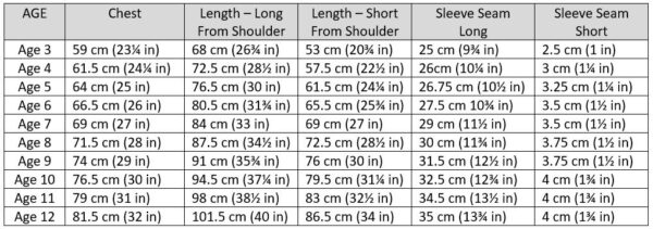 This pattern is for children ages 3 – 12 (10 sizes in all) – See next page for the measurements.