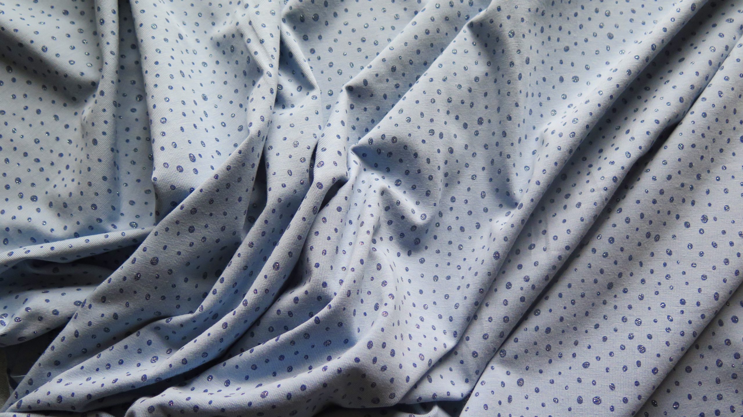Blue Glitter Dot Print Cotton Jersey Fabric £10.95 per meter