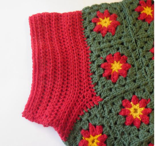 Make 1 floral square it should measures 8.5 cm / 3⅓ in. Adjust hook size if needed to match.