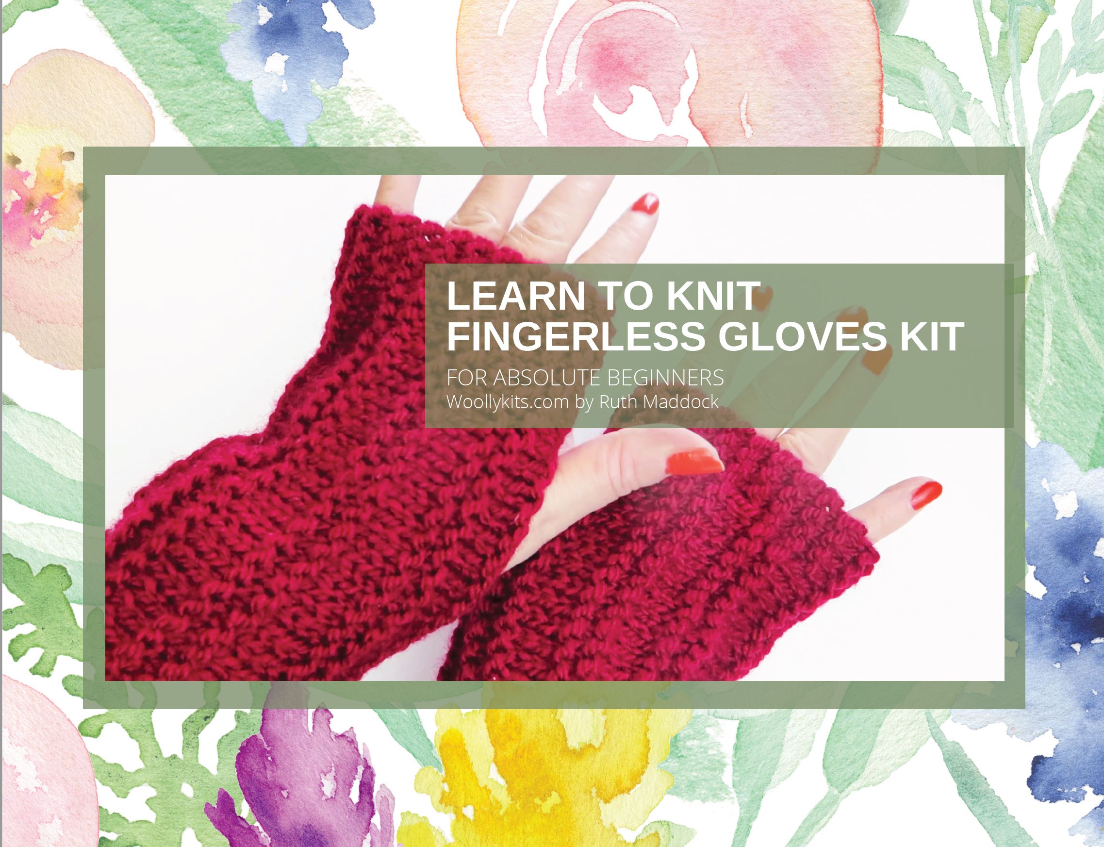The knitting kit contains all you need to make one pair of fingerless gloves.